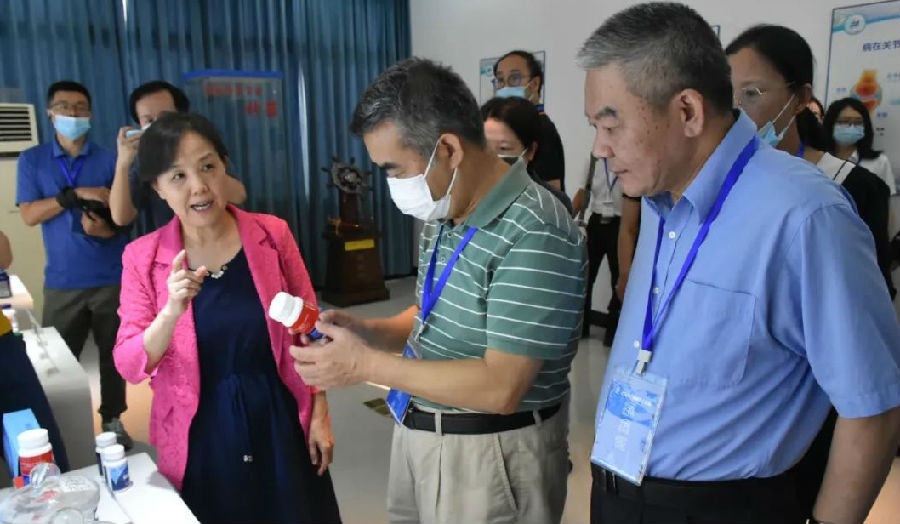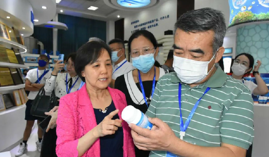 藍(lán)灣科技林秀芬董事長(zhǎng)向代表團(tuán)介紹了17年來(lái)始終專(zhuān)注堅(jiān)持做好海洋生物多糖研發(fā)創(chuàng)新,將中國(guó)氨糖、殼寡糖技術(shù)帶到行業(yè)前列的產(chǎn)業(yè)化歷程。
